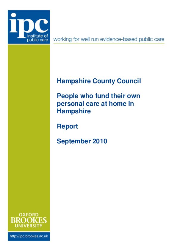 The report’s overall aim was to judge the likely number of self-funders in the local authority area and compare that figure with the estimate made in an earlier study. Specifically, it sought to ascertain the kind of services people paid for, from whom they bought them and in what volume, what contact if any they had had with the county council in arranging the care, and why they were self-funding. It also examined the critical role of unpaid carers.