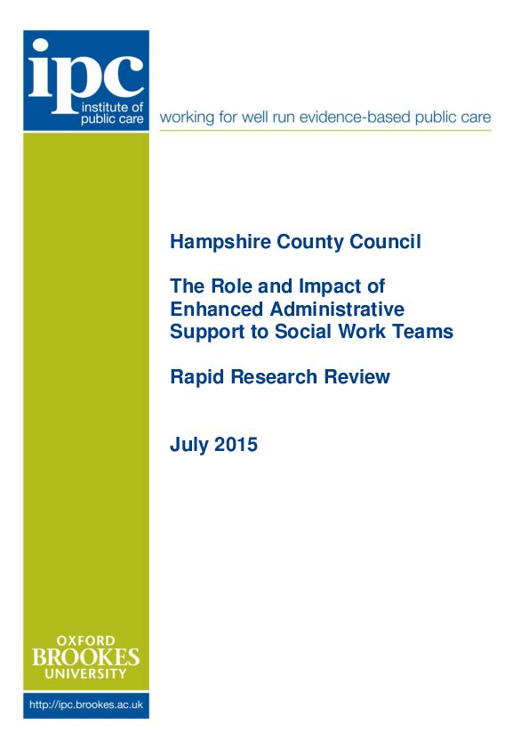 - The extent to which enhanced administrative support for individual social workers makes a difference what is known and what is still unclear